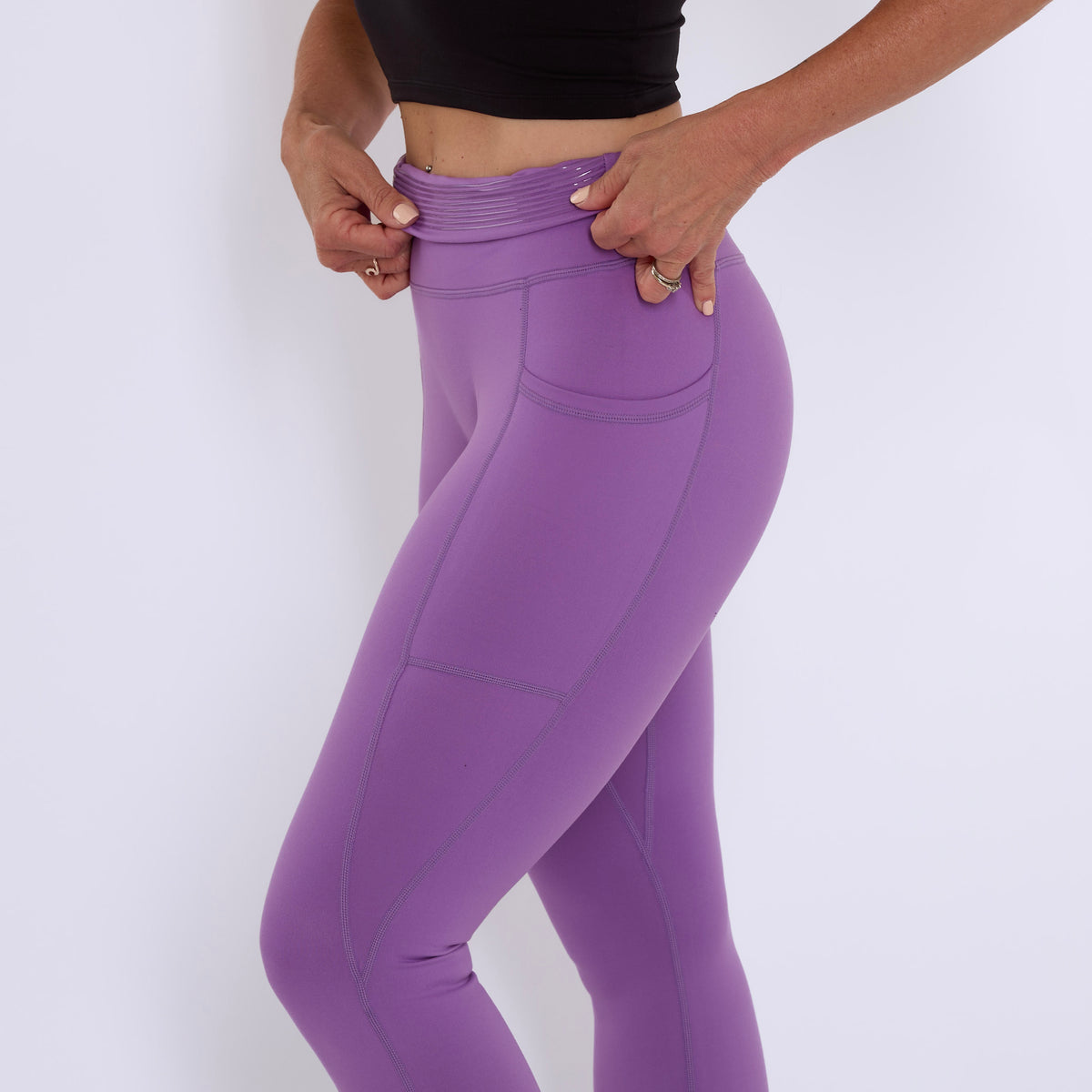 The softest, comfiest legging you’ll ever wear. Our Non-Slip workout leggings are a Top Seller! So many women are raving about the soft-buttery fabric, silicone "stay put" grips and of course the deep pockets! Our Signature silicone grips in the waistband keep your leggings up on your mid-section where they should stay.