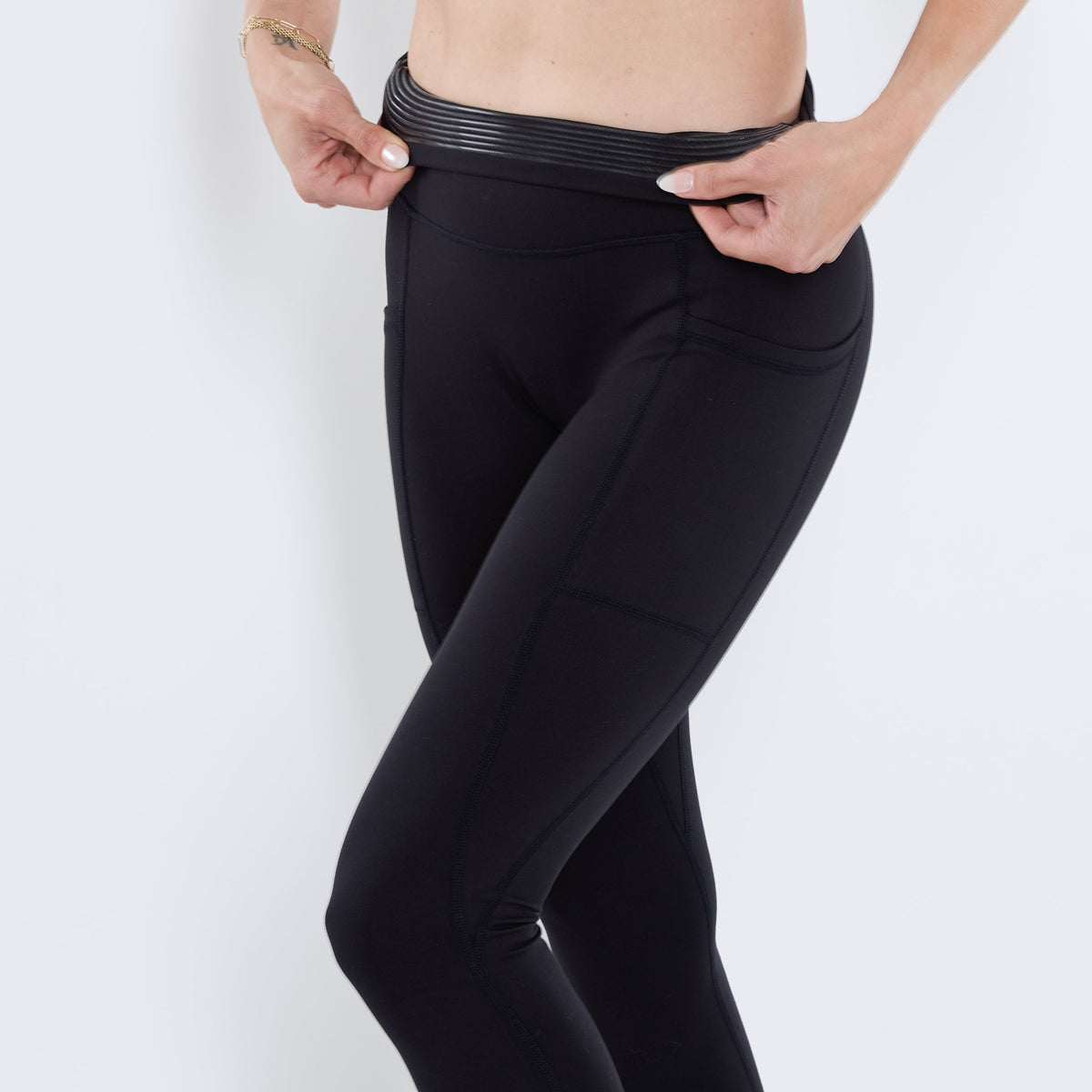 The softest, comfiest legging you’ll ever wear. Our Non-Slip workout leggings are a Top Seller! So many women are raving about the soft-buttery fabric, silicone "stay put" grips and of course the deep pockets! Our Signature silicone grips in the waistband keep your leggings up on your mid-section where they should stay.